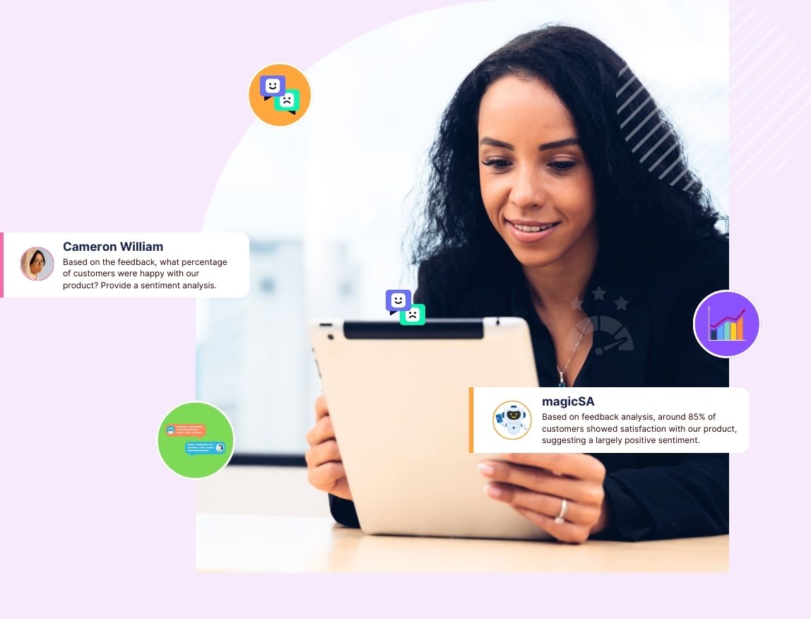 Chat with our AI to uncover actionable insights and sentiment analysis. Let magicSA translate the voice of your customers into tangible improvements for your business.