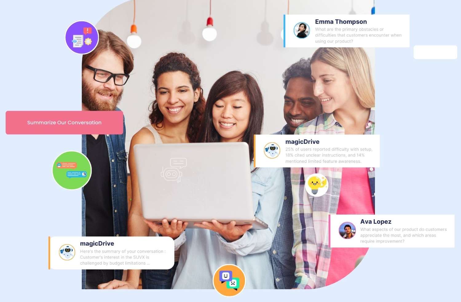 Imagine a world where AI makes your team superheroes! From initial sales conversations through ongoing support and feedback analysis, magicDrive empowers your team to deliver exceptional experiences at every touchpoint. It is the secret weapon to skyrocketing sales and customer satisfaction.